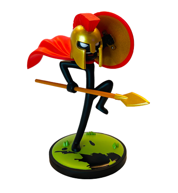 Golden Spearton from the popular game "Stick War: Legacy" in a battle pose . This collectable vinyl figure contains a red cape, gold spear, gold shield and gold helmet. Comes Sealed In Stick War style box as shown in photos.