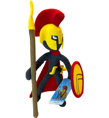 Spearton from the popular game "Stick War: Legacy". This Plush Spearton has fully posable body, limbs and head. If that's not enough it also comes with magnetic Shield, Spear and Sword.
